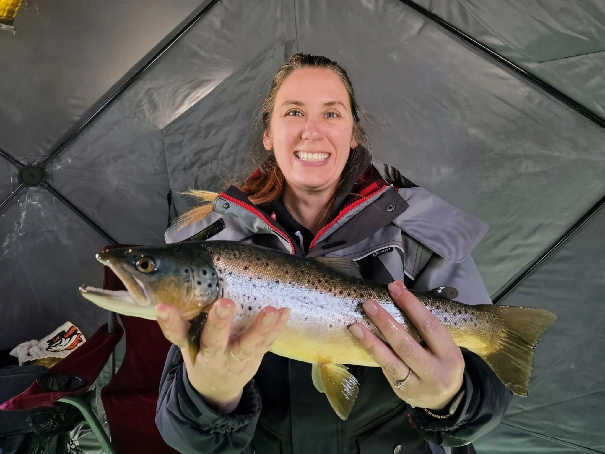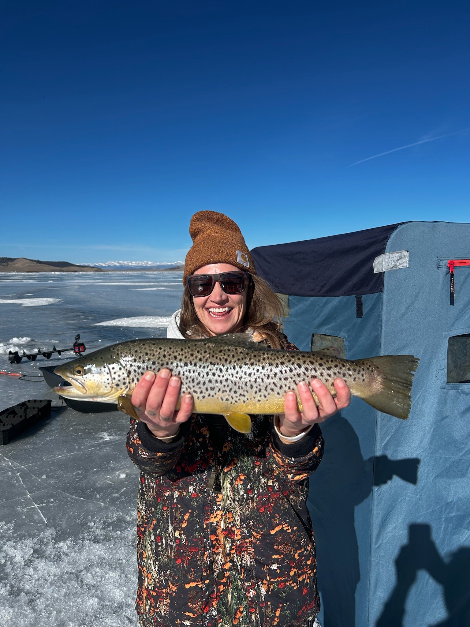 PIC # 2: Another nice Brown “I got this guy on Jan 29 at Rodgers mtn. I was jigging a Dynamic water deamon in craw oil color. I caught a pike on it earlier the same day, same place. pic courtesy Kathleen P.